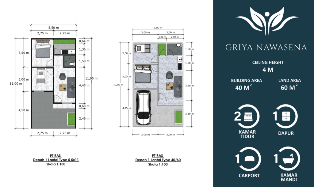 - 2 Kamar Tidur, 1 Kamar Mandi, Carport